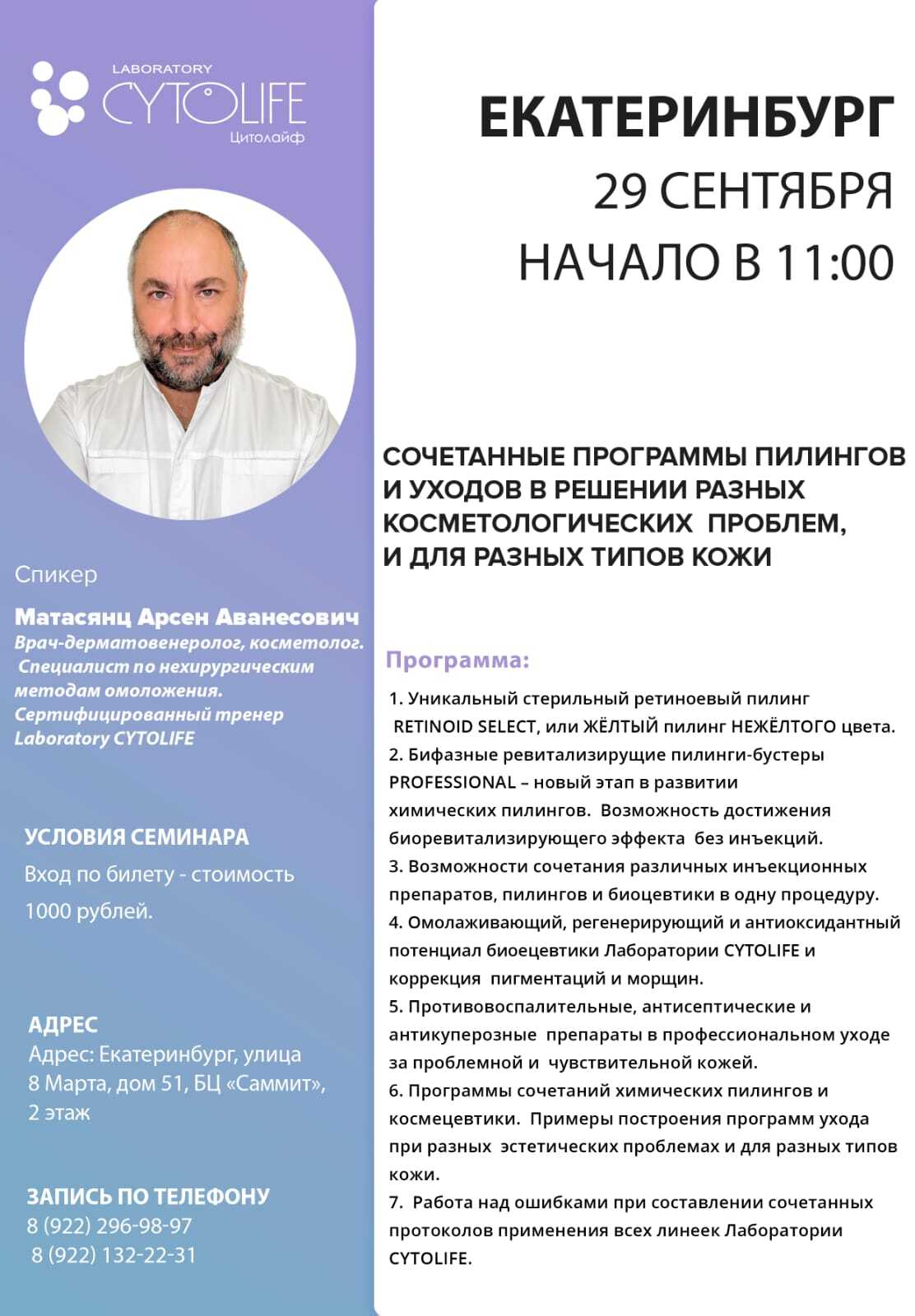 Семинар будет полезен как уже практикующим на Cytolife специалистам, так и новичкам. Теория, практика и фуршет 🥂.