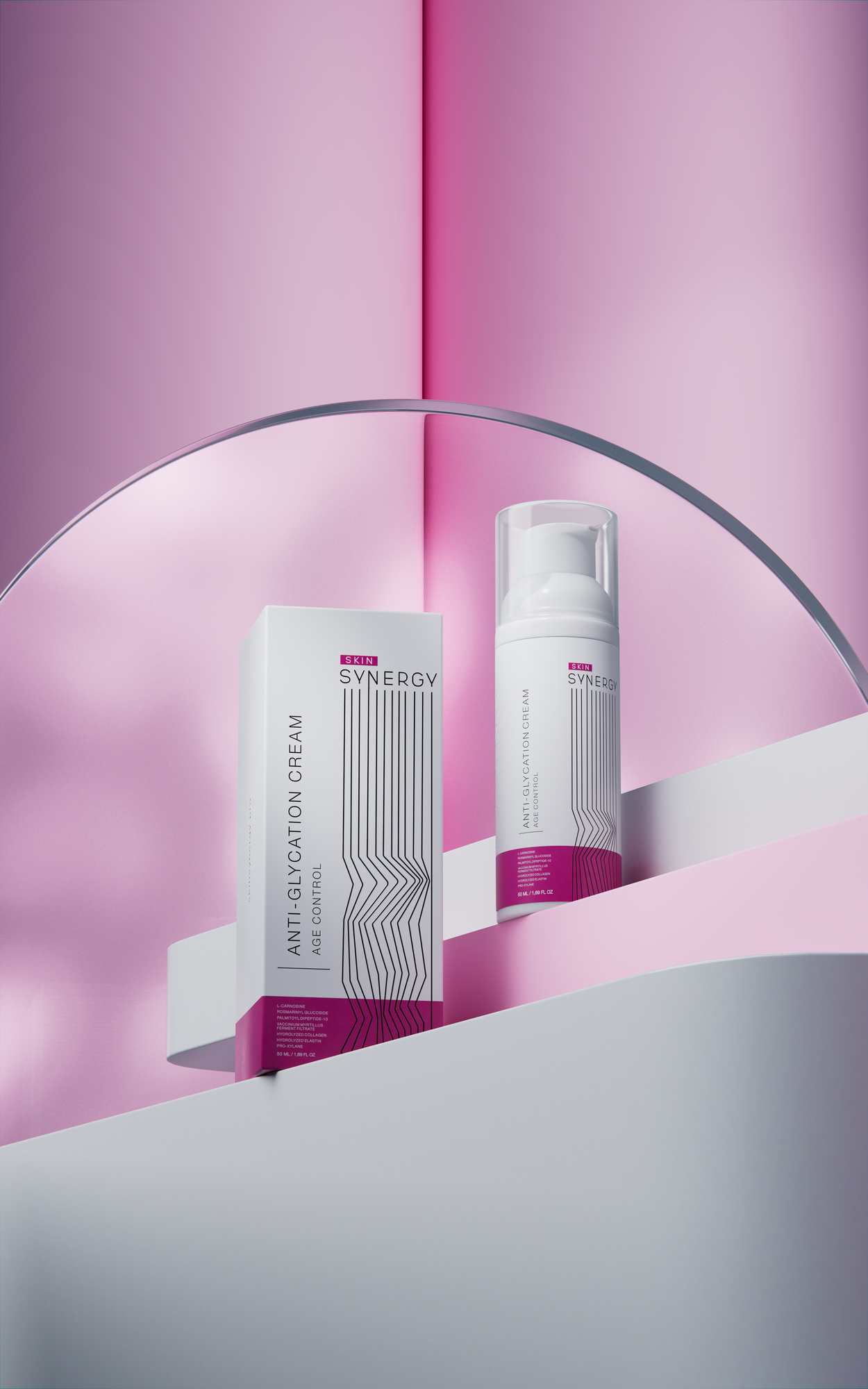 Это эндогенный процесс старения, в ходе которого молекулы сахаров неферментативно присоединяются к коллагену и эластину. В результате серии необратимых химических преобразований, известных как «реакция Майяра», формируются конечные продукты гликации. Они индуцируют сшивку пептидных цепей, что приводит к повышению «жёсткости» внеклеточного матрикса. Эти продукты снижают способность волокон к регенерации, вызывая развитие возрастных изменений кожи. Крем Skin Synergy с антигликационной активностью разработан для коррекции признаков старения зрелой кожи, в том числе, вызванных процессами